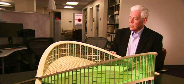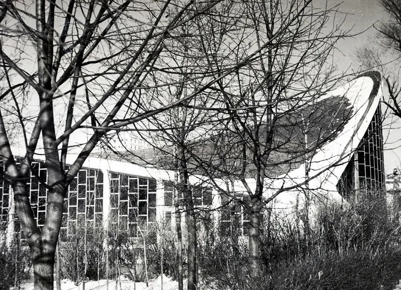 Найкращим визнали варіант молодого архітектора Вадима Васильєва. Він запропонував модель із незвичайним на той час вантовим покриттям: