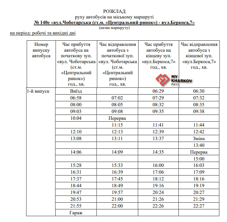 Новий розклад руху автобуса №140е буде запроваджений з 23 жовтня.