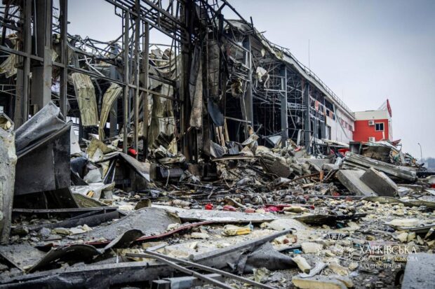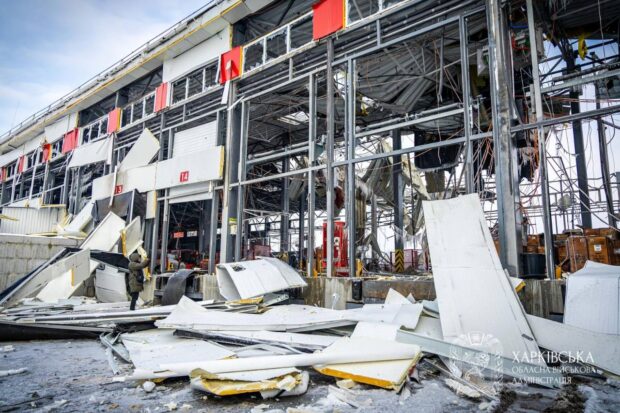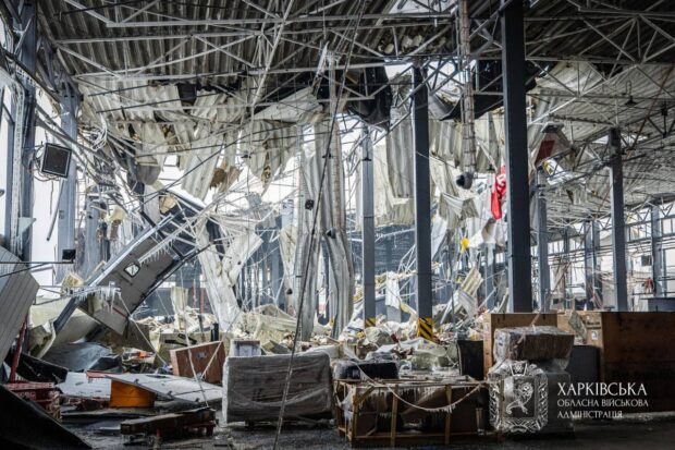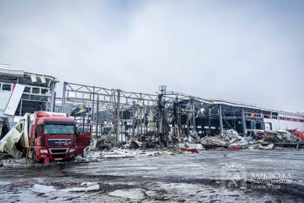 Начальник Харківської ОВА Олег Синєгубов показав фото зруйнованого росіянами термінала “Нової пошти” в передмісті Харкова, де загинули 4 людини.