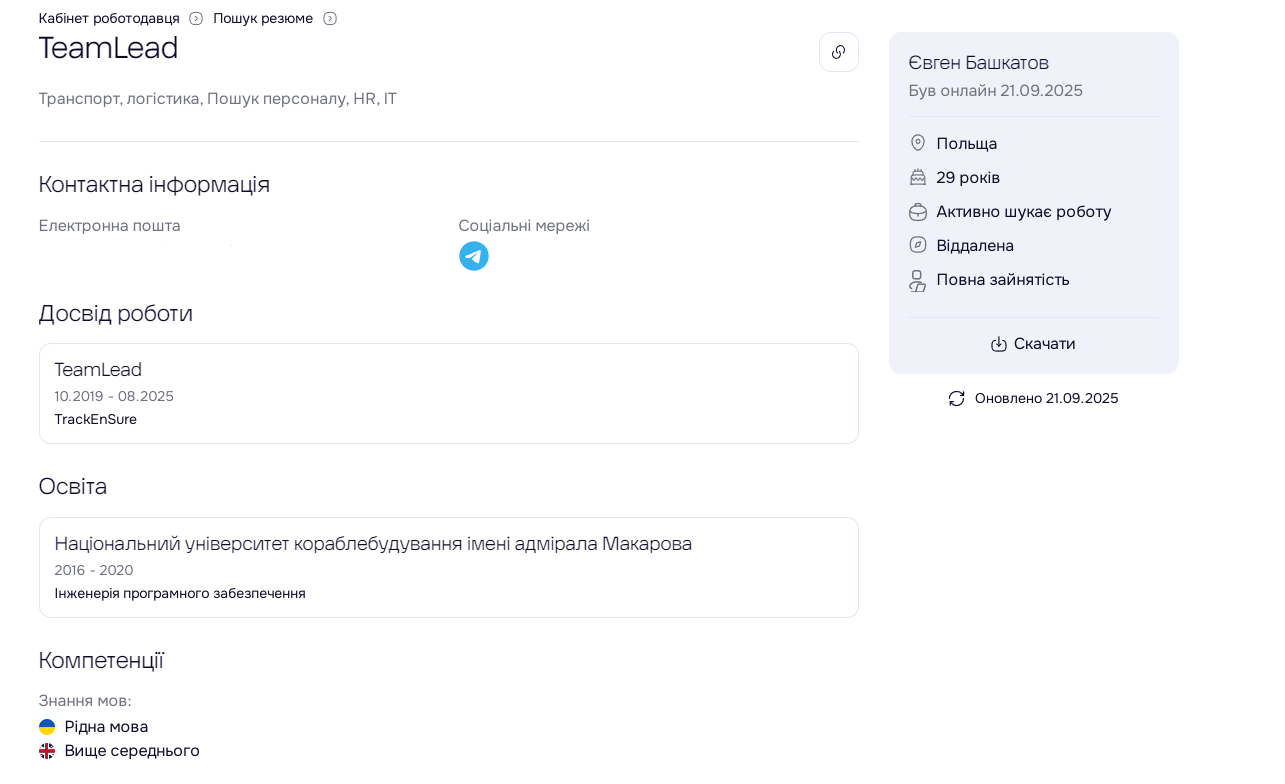 В своїх резюме (які створюються одразу на сайті завдяки спеціалізованій і стандартизованій формі) користувачі зазначають бажаний рівень зайнятості (повна чи, наприклад, стажування) а також форми роботи яку вони розглядають прийнятною для себе. Наприклад, це може бути робота в офісі з повною зайнятістю чи гібридна форма роботи. Також, звісно, кандидат зазначає свій рівень освіти, володіння мовами та наявність портфоліо та рекомендацій.