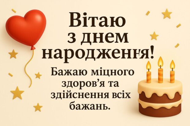 Вітаю з днем народження! Бажаю міцного здоров’я та здійснення всіх бажань.