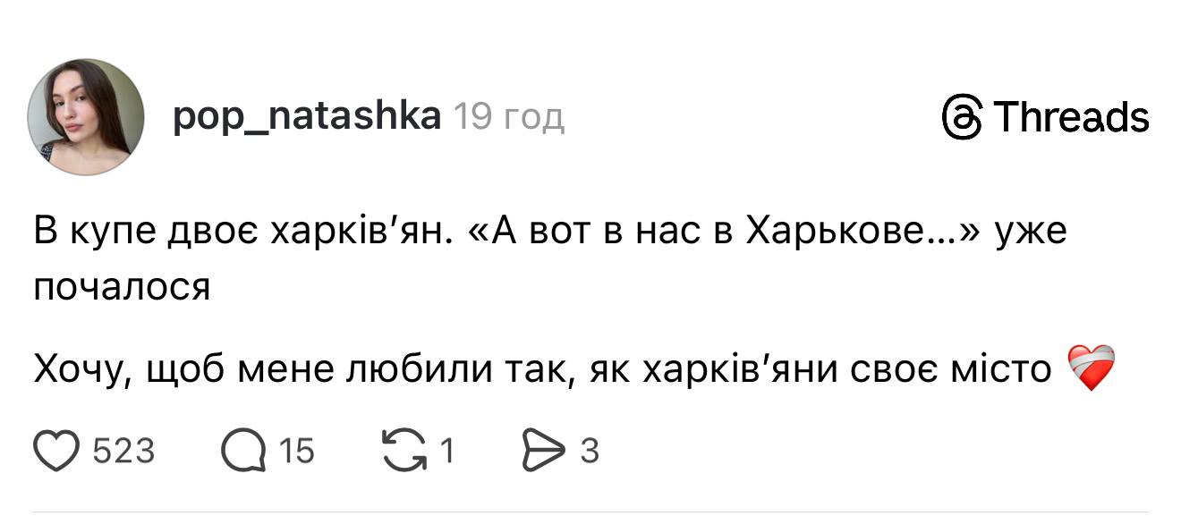 Харків зберіг свій шарм, інтелігентність та непохитну ідентичність. Хай там хто вважає нас пихатими, насправді це про безмежну любов до рідного міста. Тож із вірою в серці чекаємо, коли нарешті всі зможуть призначити зустріч рідним під Градусником, на Стрілці чи на Стекляшці. Бо вдома — найкраще.